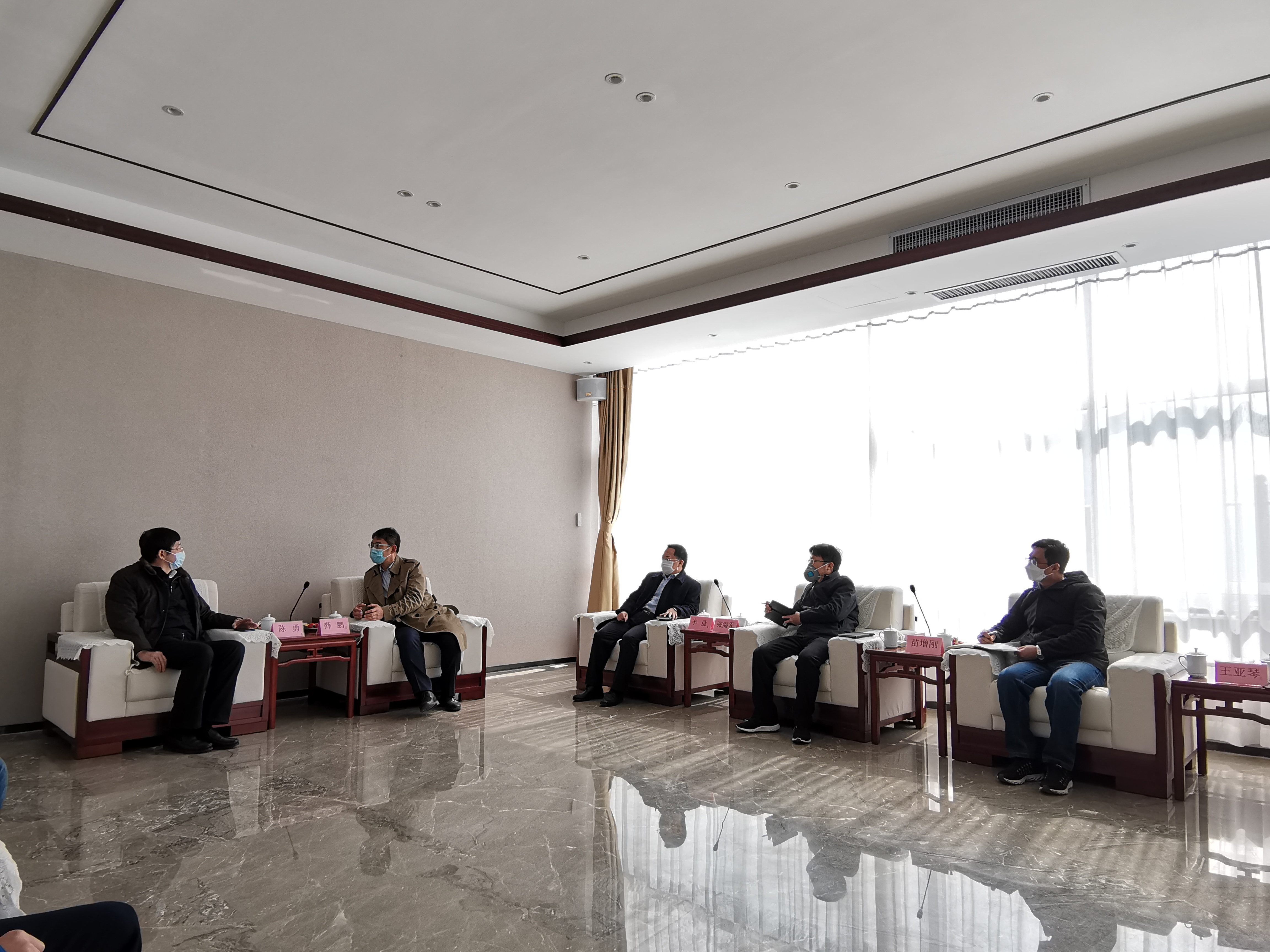 薛鵬董事長向陳勇局長等詳細匯報了企業(yè)生產(chǎn)經(jīng)營情況、“戰(zhàn)疫情”和復工復產(chǎn)采取的措施、目前存在的困難和問題、以及集團發(fā)展方向和工作重點等。