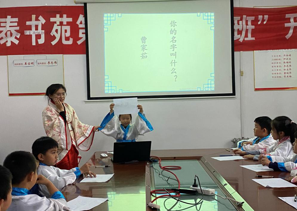 在大家熱烈的歡呼掌聲后,曹老師開始給孩子們授課。首先,曹老師給孩子們講授演示如何“行揖禮”,一向孔子行禮,二向老師父母行禮,三向同學(xué)行禮。孩子們在老師的演示和指導(dǎo)下,認(rèn)真行禮。