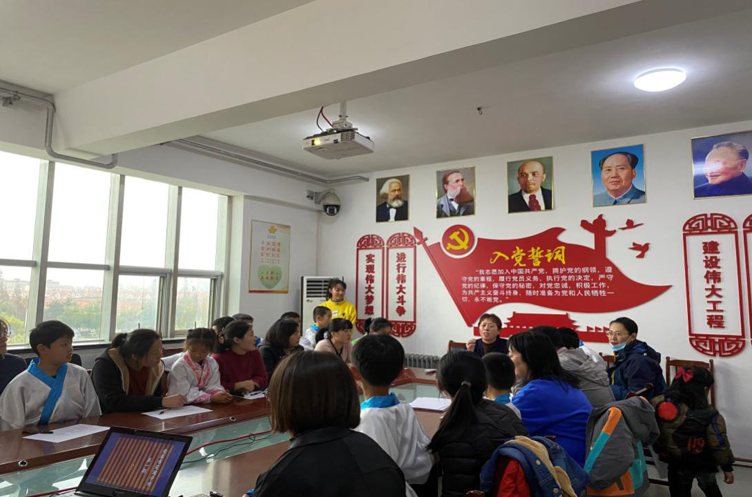 職工及家屬帶著孩子們來到會議室,孩子們一個個熱情高漲,臉上洋溢著燦爛的笑容,職工及家屬們也都面露喜色,期待著這次別開生面的開營典禮。為營造國學(xué)課的良好氛圍,典禮開始之前,吳主席組織家長給孩子們換上漢服,孩子們穿上漢服,開心地站在父母身側(cè)。