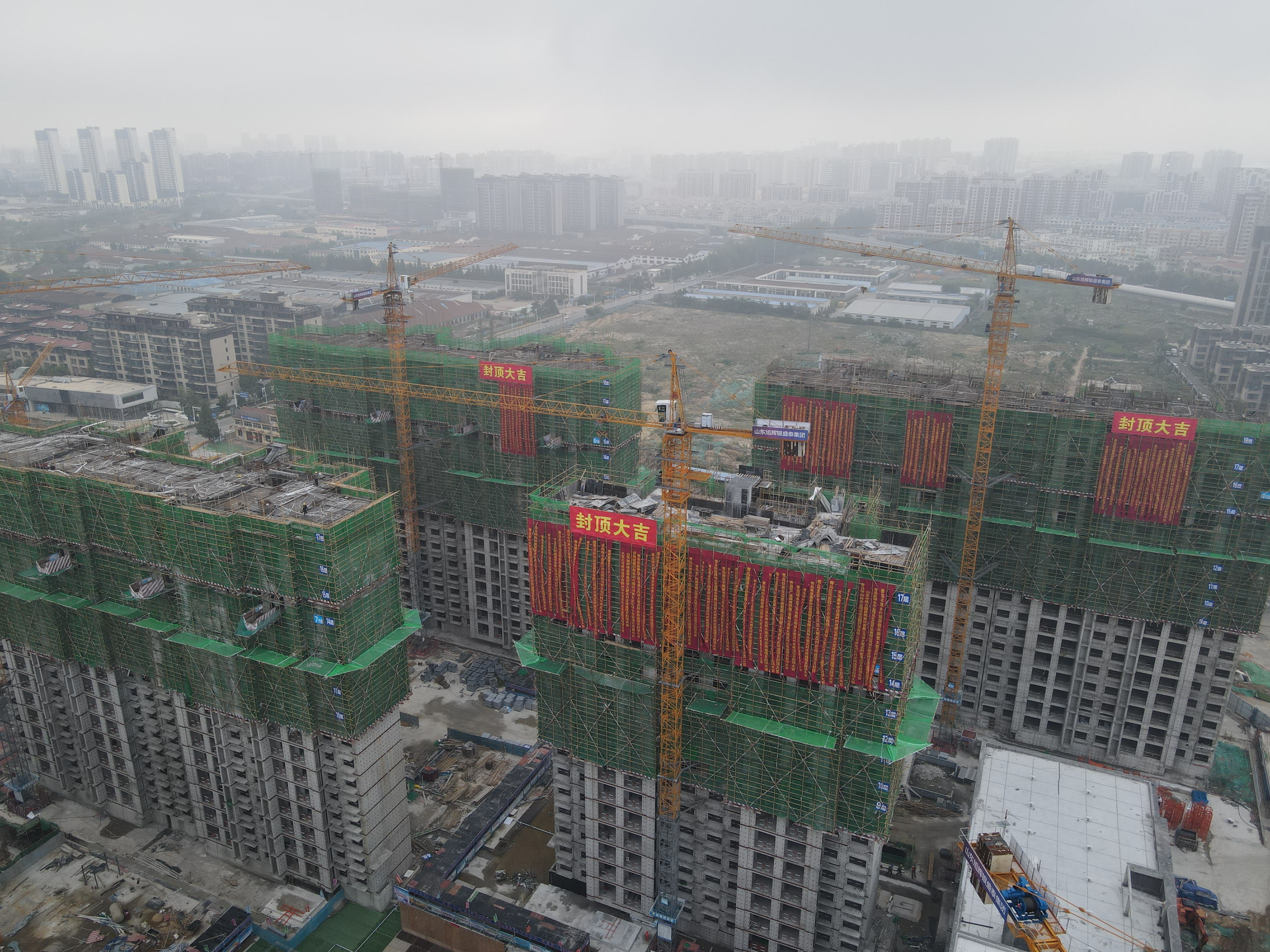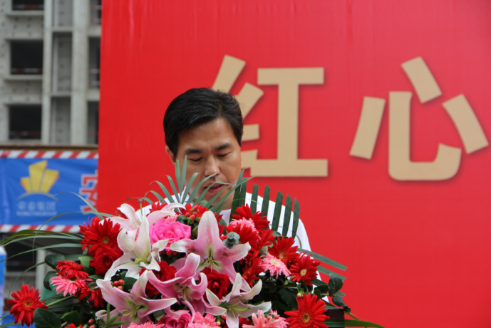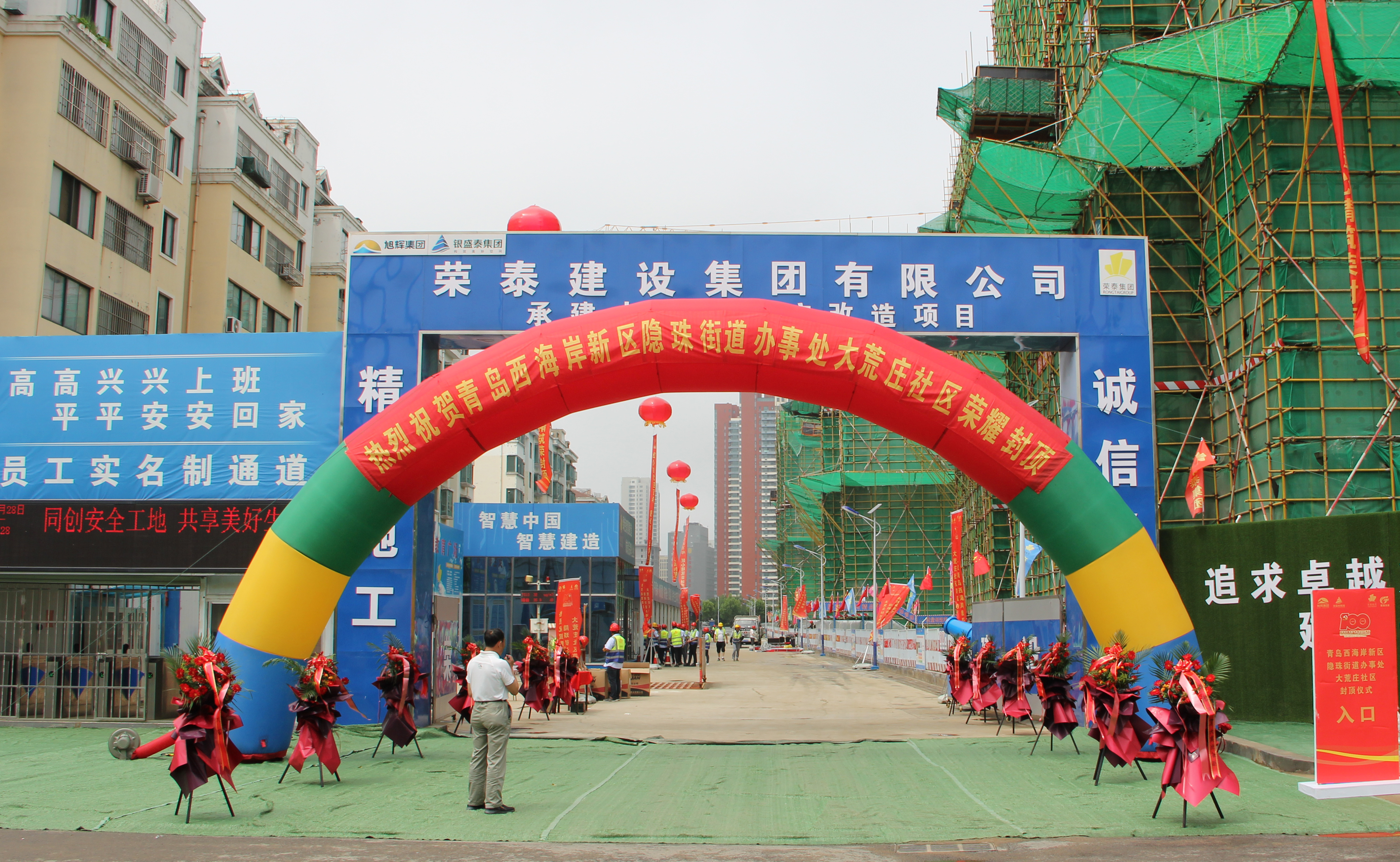 青島西海岸新區(qū)海洋高新區(qū)管委、青島西海岸新區(qū)隱珠街道辦事處、大荒莊社區(qū)黨委、山東旭輝銀盛泰集團(tuán)有限公司、青島建通浩源集團(tuán)有限公司、榮泰建設(shè)集團(tuán)有限公司等相關(guān)部門和企業(yè)領(lǐng)導(dǎo)、大荒莊社區(qū)群眾代表、新聞媒體界朋友等近千人出席了封頂儀式。
