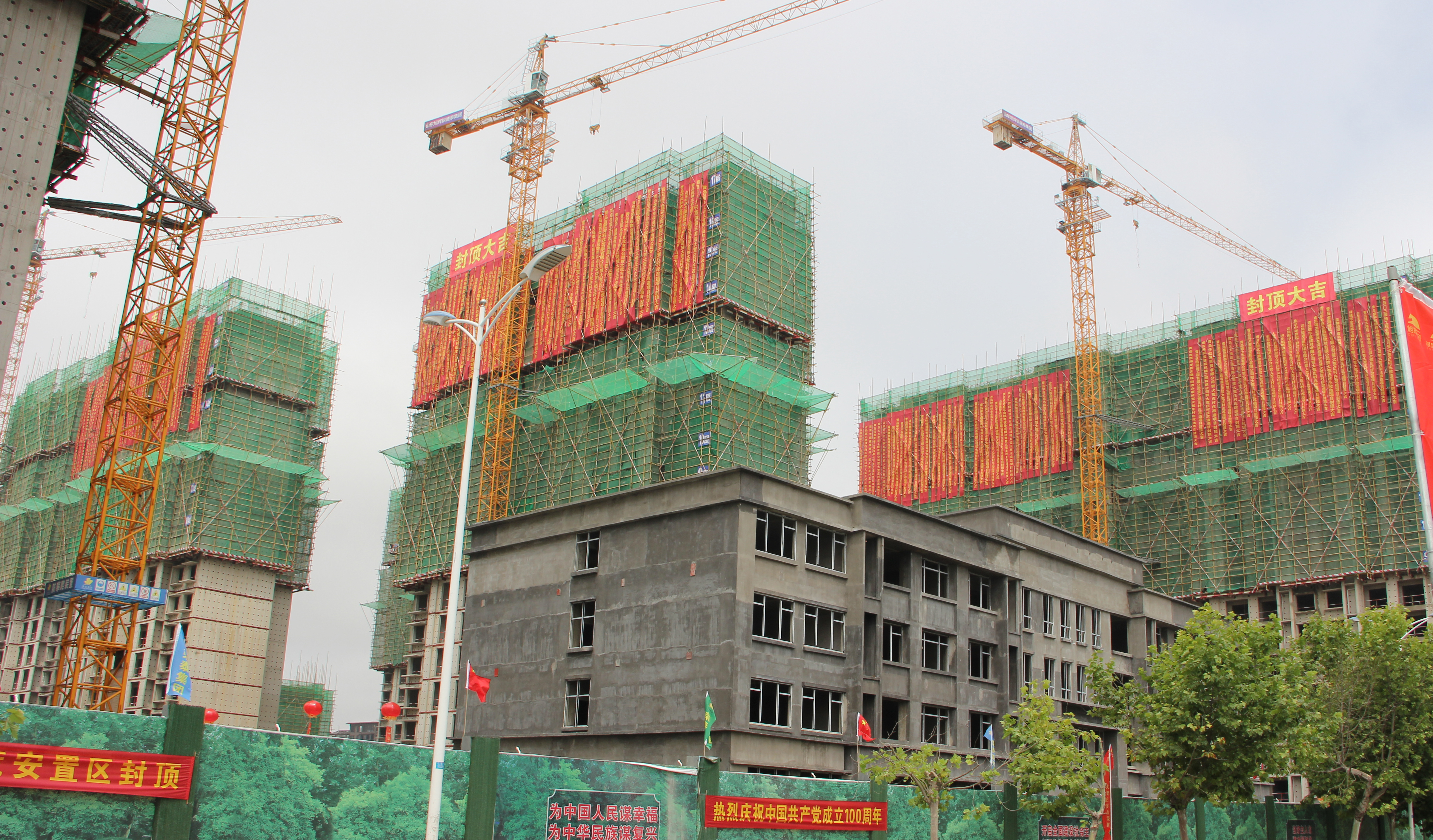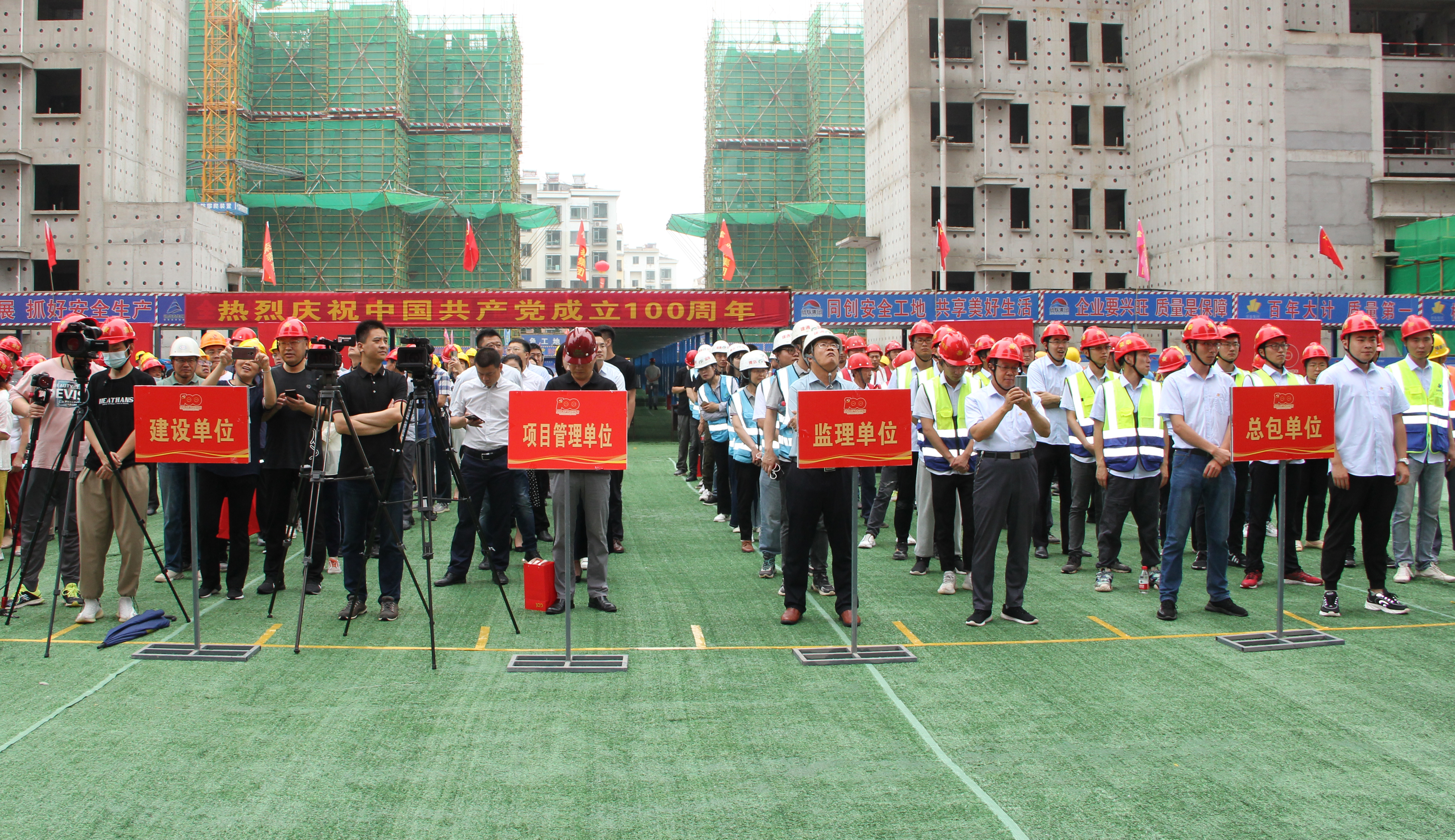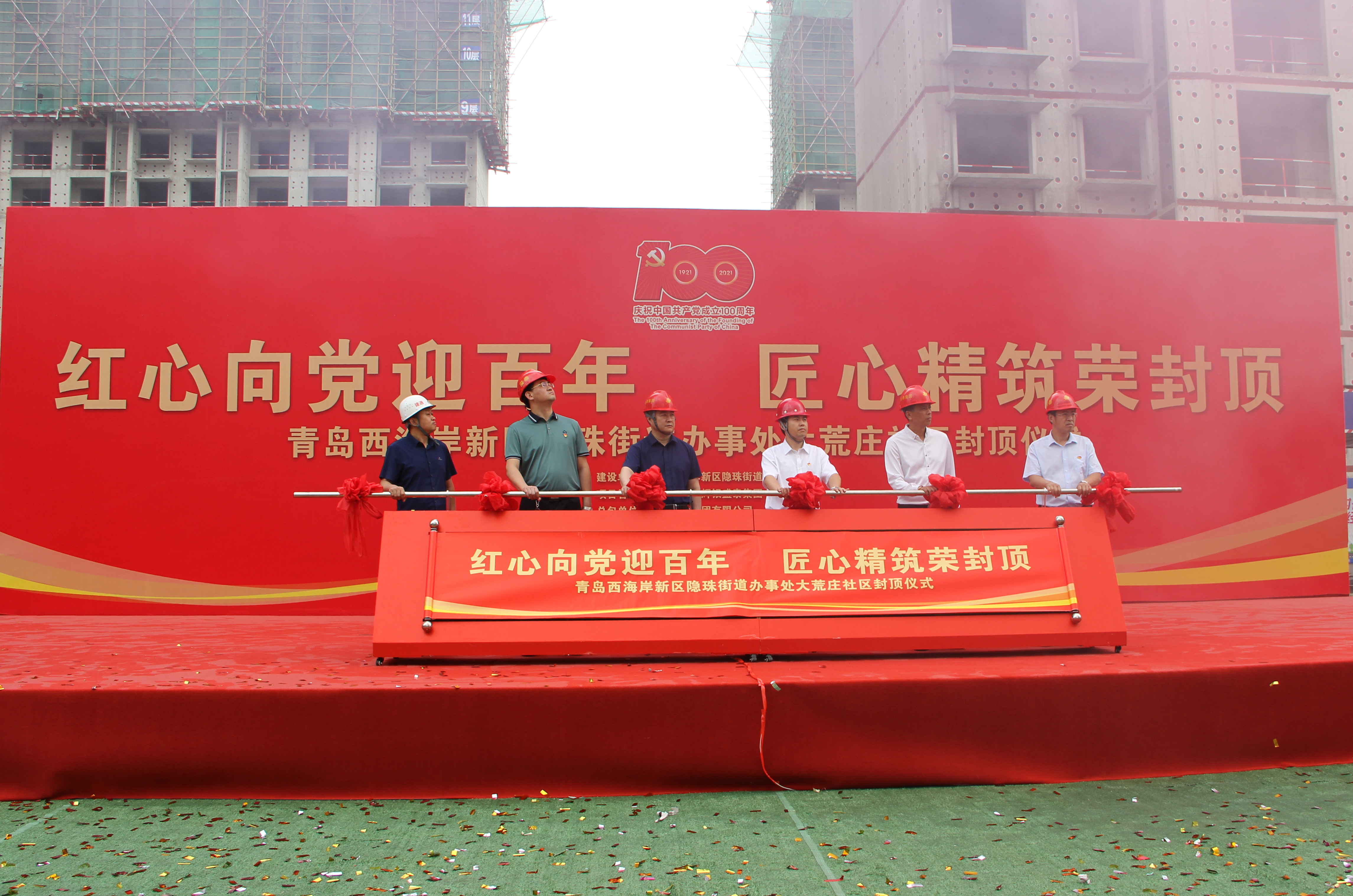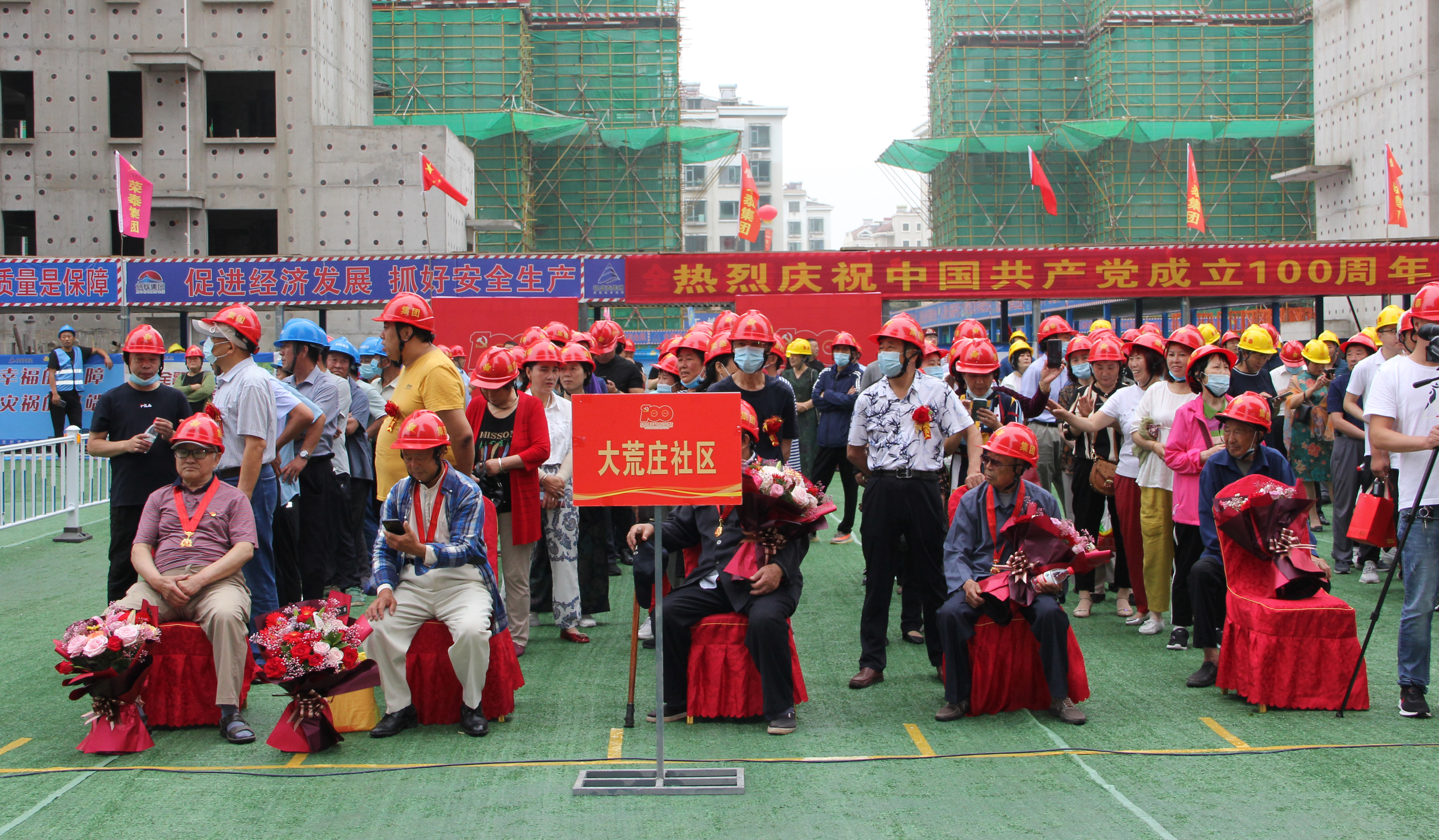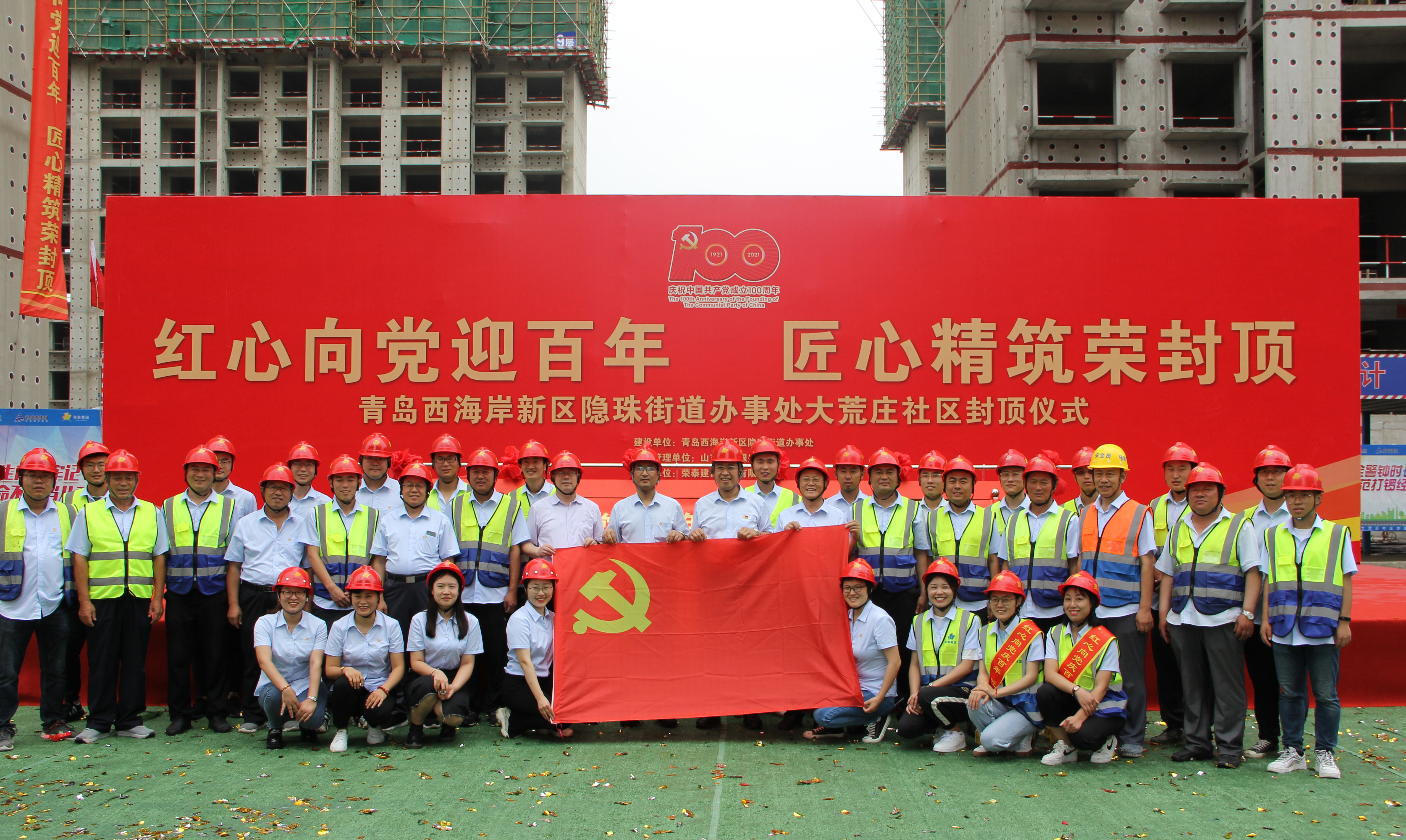 2021年6月28日上午,在喜迎中國共產(chǎn)黨成立100周年之際,大荒莊社區(qū)建設(shè)現(xiàn)場人頭攢動(dòng),由榮泰建設(shè)集團(tuán)承建的大荒莊社區(qū)項(xiàng)目主體封頂儀式隆重舉行。