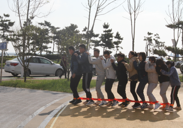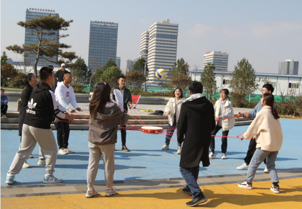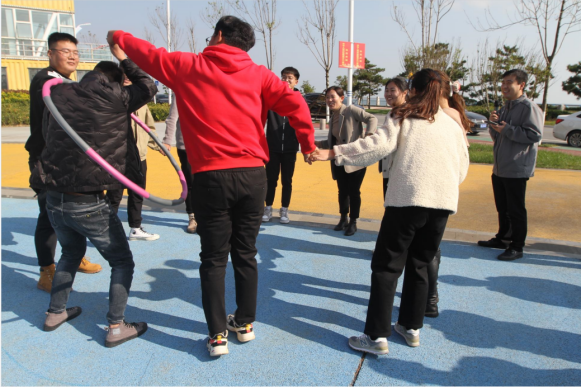 活動在活潑歡快的音樂中拉開了序幕,“摸石過橋”“不倒森林”“同心擊鼓”“巨人腳步”······這些創(chuàng)意有趣的互動環(huán)節(jié),迅速打破了青年員工的隔閡,搭建起互相認(rèn)識、溝通的橋梁。