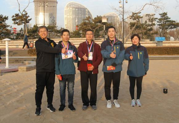 集團(tuán)領(lǐng)導(dǎo)為“跑步迎新年”獲獎(jiǎng)人員頒獎(jiǎng)并合影留念。