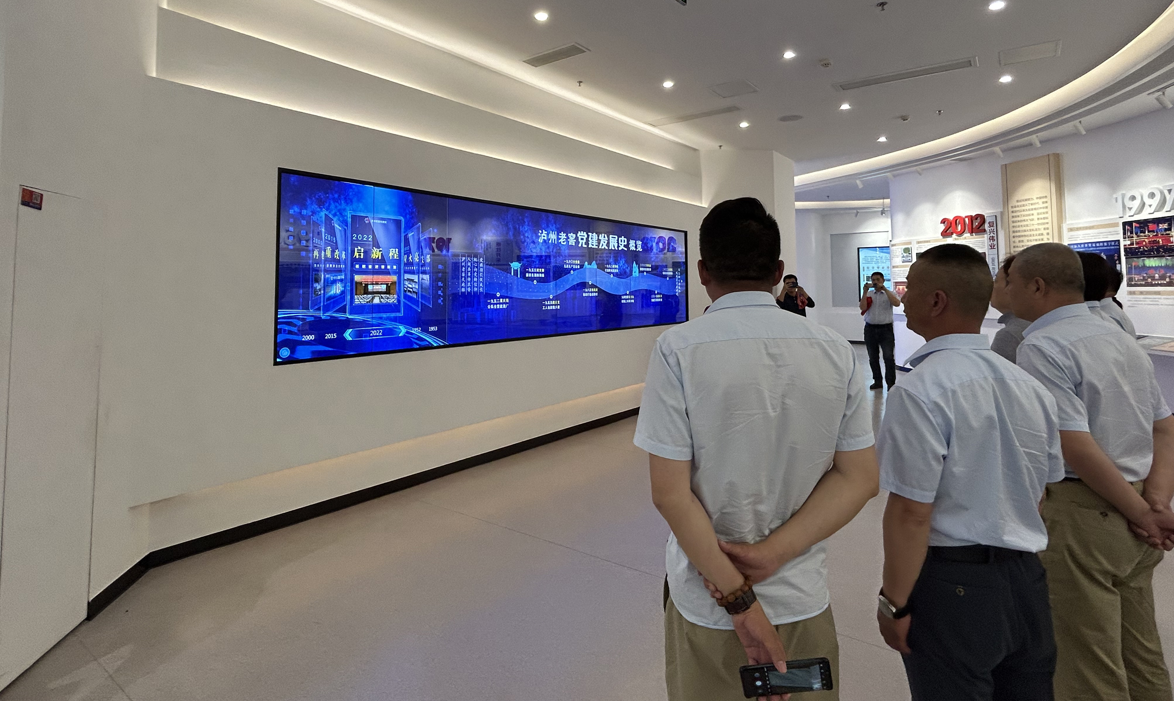 學(xué)習(xí)小組第一站參觀了瀘州老窖黨群服務(wù)中心,系統(tǒng)了解了企業(yè)的黨建歷史、企業(yè)文化、智慧黨建系統(tǒng)等情況。展廳內(nèi)黨建與科技相結(jié)合的數(shù)字化展陳方式、多功能的區(qū)域設(shè)置,生動地展現(xiàn)了極具現(xiàn)代感的黨建工作,讓大家感到耳目一新。