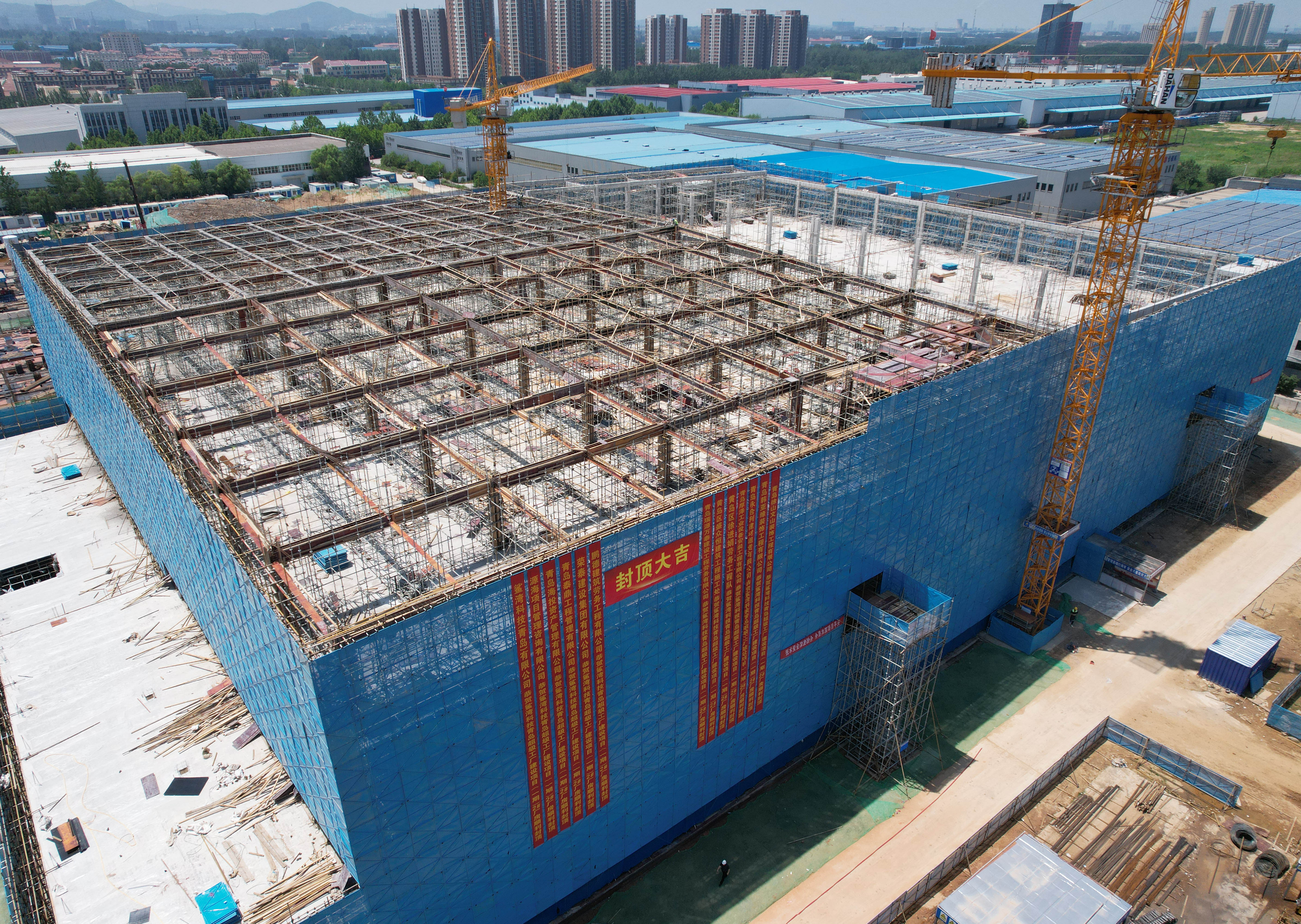7月7日,鯊灣科技青島超級工廠建設(shè)項(xiàng)目(一期)2#通用廠房順利封頂,提前15天完成項(xiàng)目節(jié)點(diǎn)目標(biāo)!