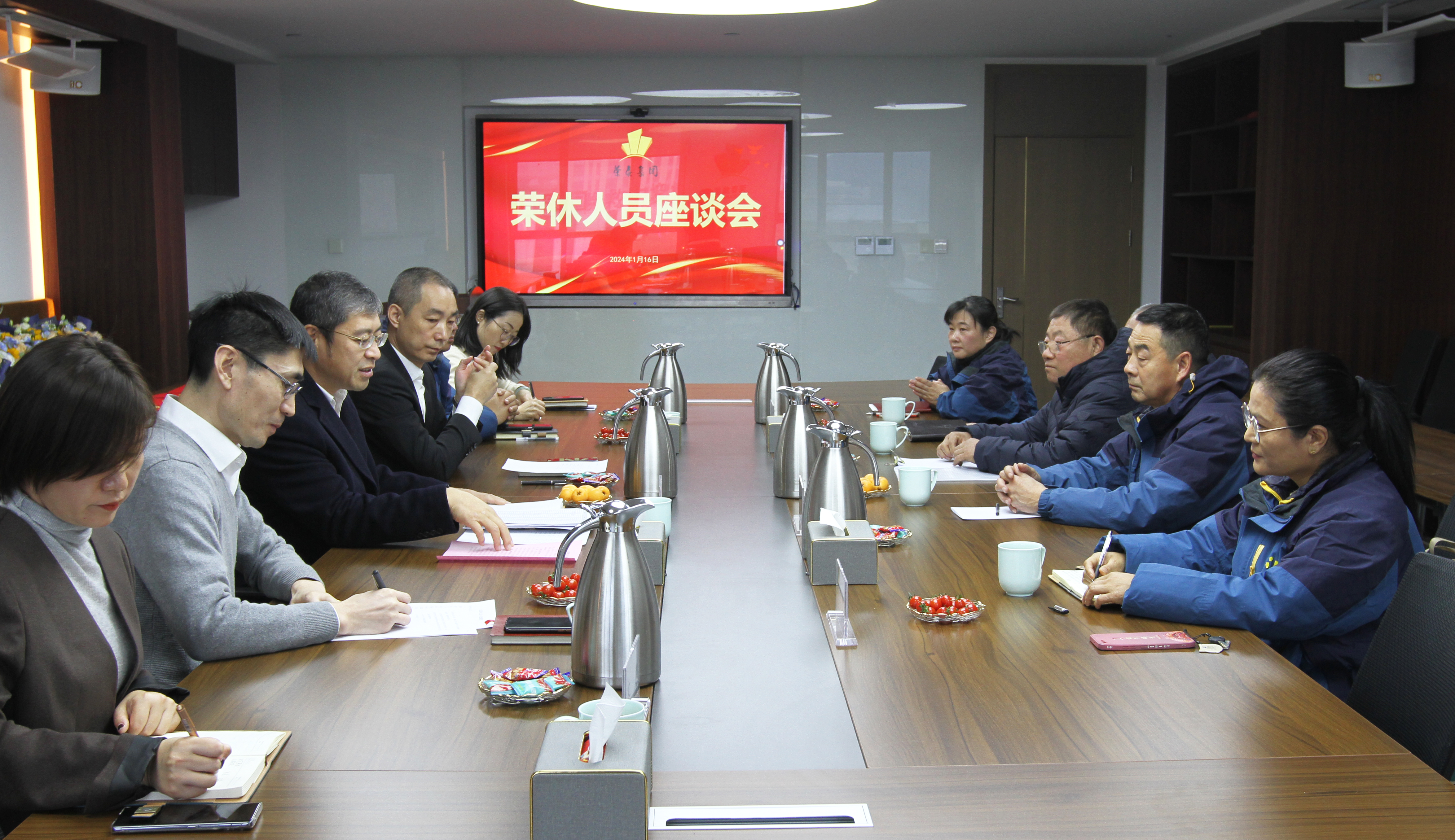 1月16日上午,榮泰集團舉行榮休座談會,薛鵬董事長、王洪總裁、相關部門領導及榮休員工代表參加。