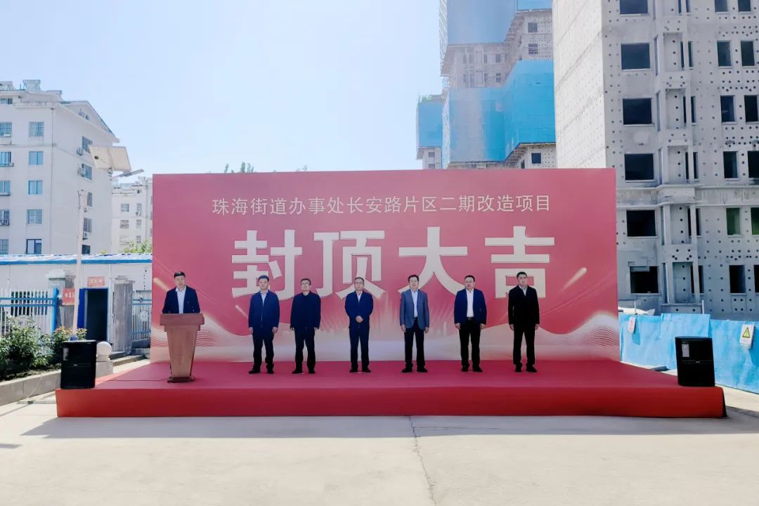封頂儀式由珠海街道黨工委副書記、辦事處主任趙輝主持。區(qū)人大常委會黨組成員、副主任曲波,區(qū)政協(xié)副主席許傳輝,區(qū)城市更新和城市建設(shè)指揮部辦公室、發(fā)改局、財政局、自然資源局、住建局、行政審批局分管領(lǐng)導(dǎo),隱珠街道辦事處主要領(lǐng)導(dǎo),城發(fā)集團(tuán)主要領(lǐng)導(dǎo)同志等領(lǐng)導(dǎo)嘉賓參加封頂儀式。