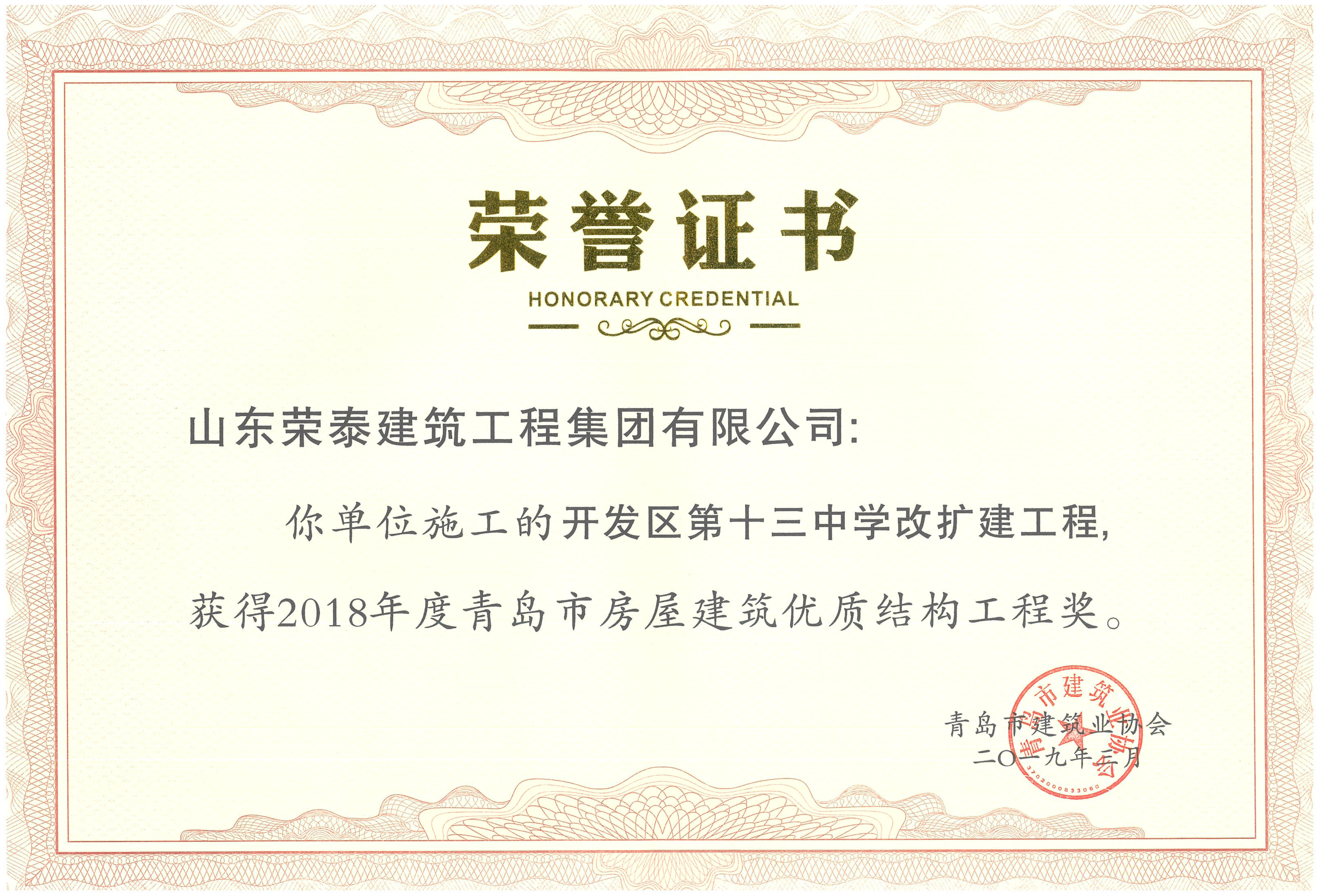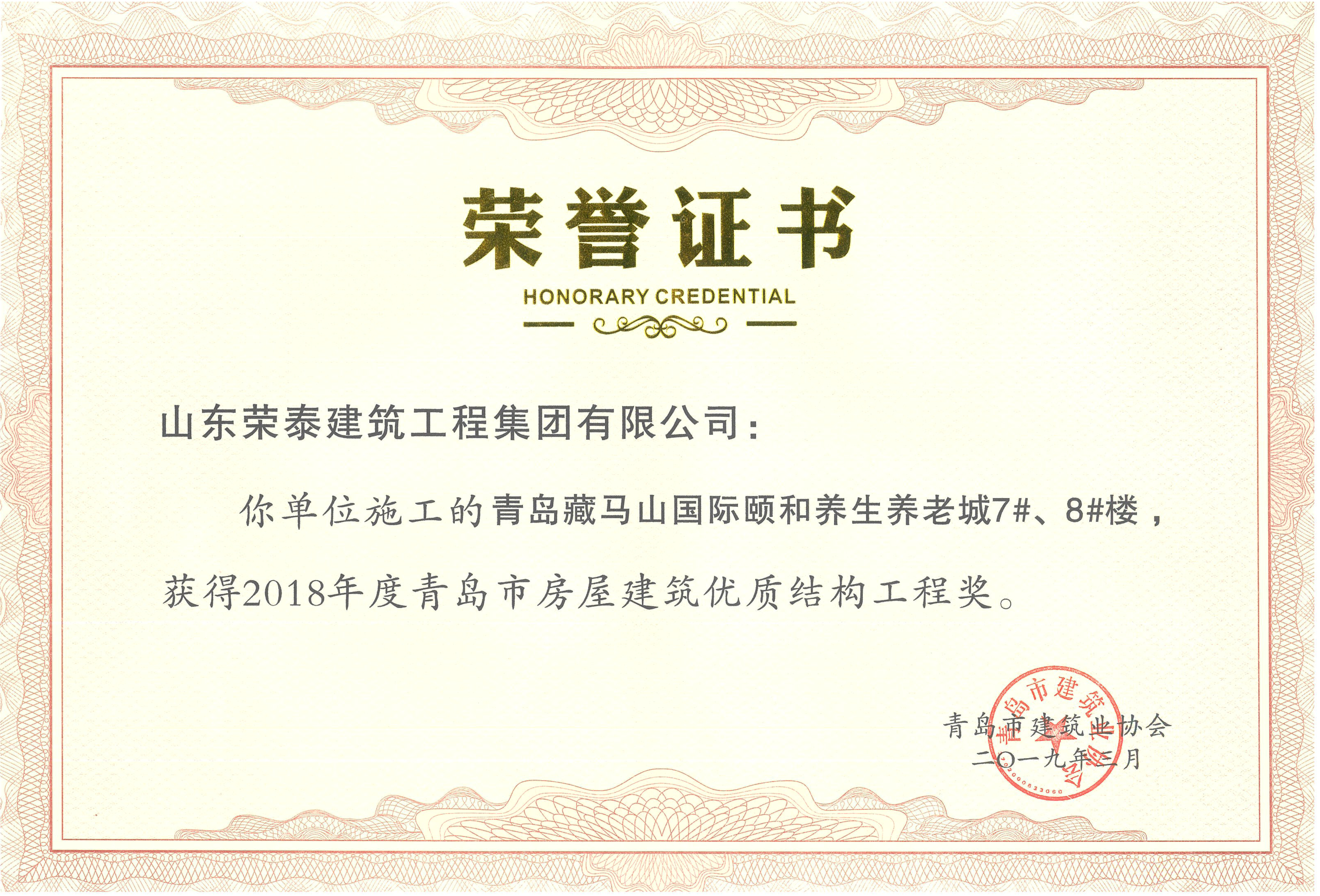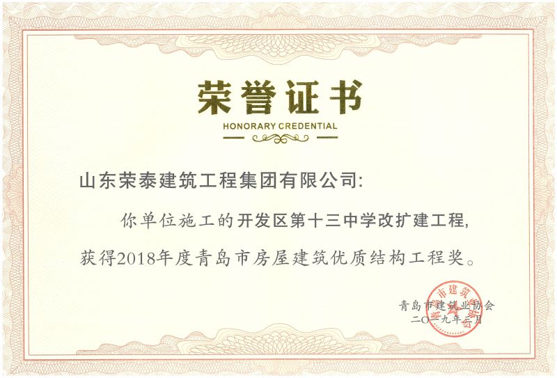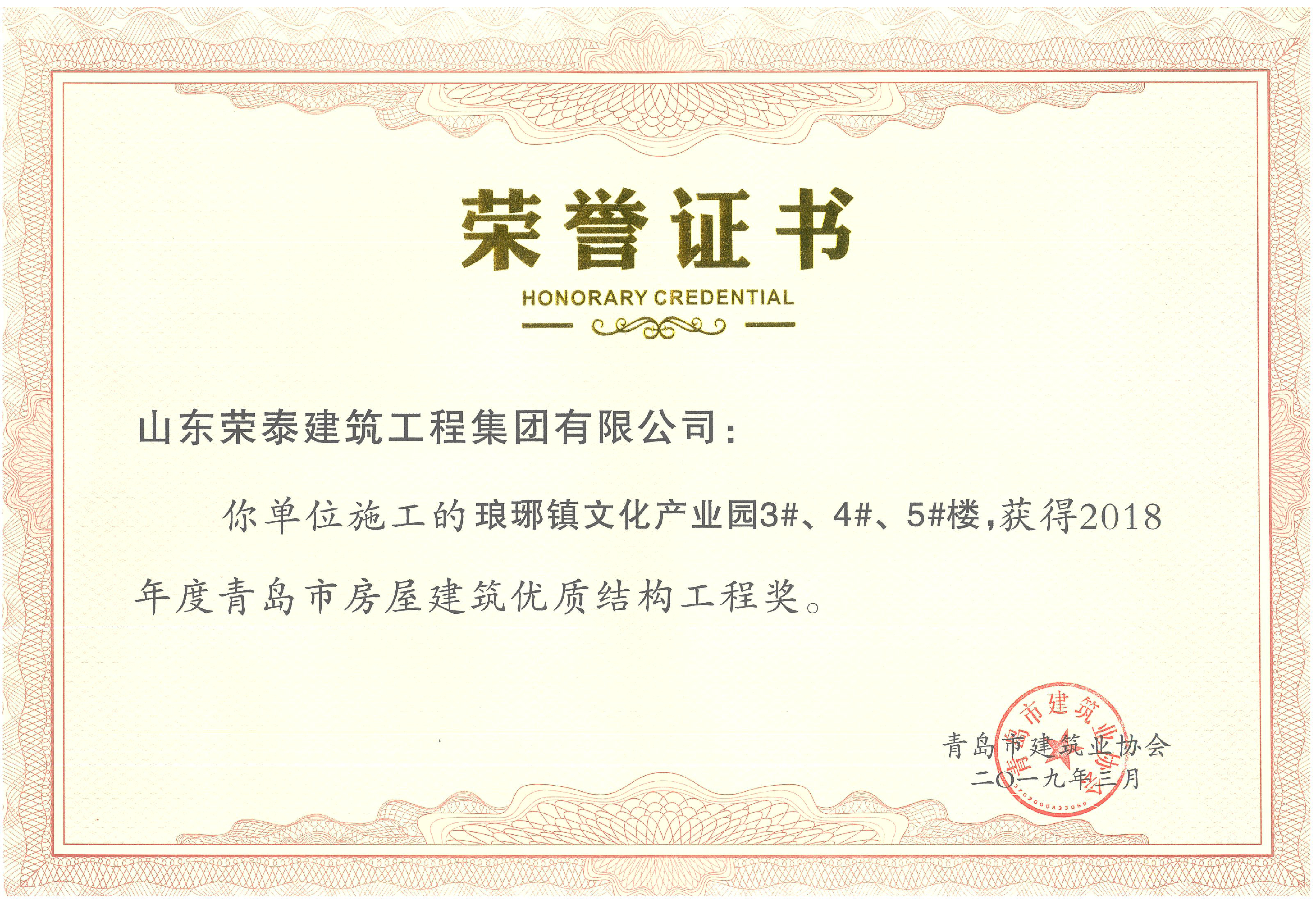 青島市房屋建筑優(yōu)質(zhì)結(jié)構(gòu)工程獎