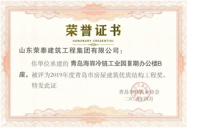 2019市優(yōu)質(zhì)結構-海榮冷鏈辦公樓